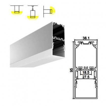 1.5 inches Aluminium LED profile for pendent light, with dropped cover 20mm