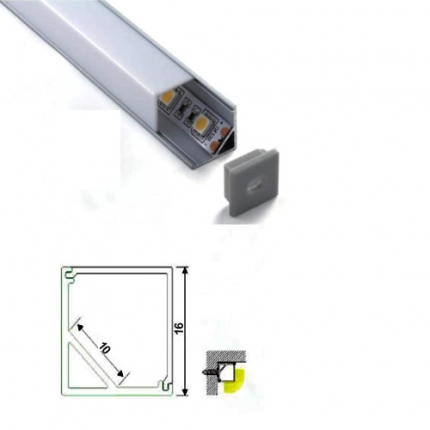 Square aluminum LED profile Option: 1) PMMA opal matte diffuser 2) PMMA semi-clear matte diffuser 3) PMMA clear matte diffuser