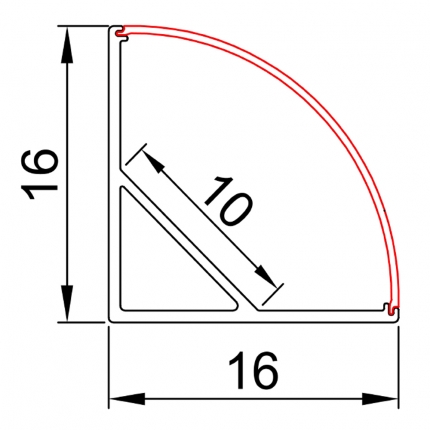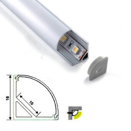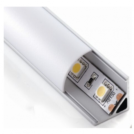 Aluminum corner LED profile, Option: 1)PMMA opal matte diffuser 2)PMMA semi-clear matte diffuser 3)PMMA clear matte diffuser