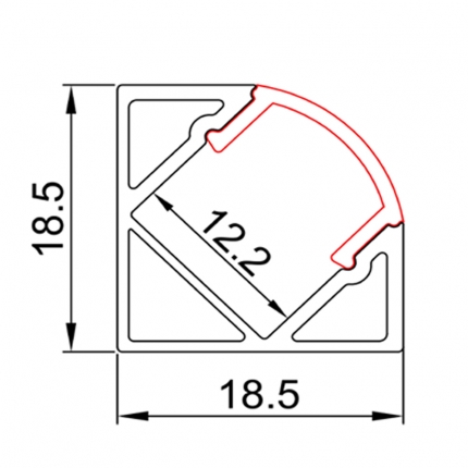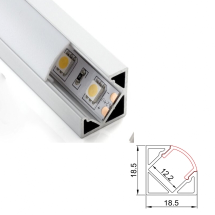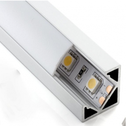 Aluminum corner LED profile, Option: 1)PMMA opal matte diffuser 2)PMMA semi-clear matte diffuser 3)PMMA clear diffuser