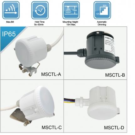 Also, the 1-10V interface in the sensors can match up with stand-alone daylight sensor MSCTL, and implement daylight harvesting, means the lighting system has automated controls that either turn off or dim artificial light in response to the available daylight in the space