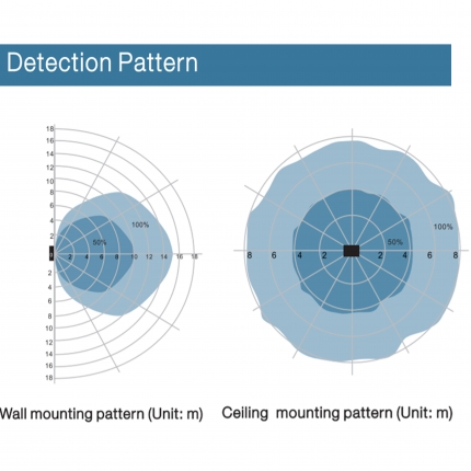 - Wide detection area, range up to 16m in diameter and