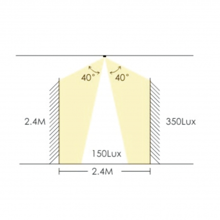 - Wall-wash optic for illumination of vertical surfaces or high-contrast down lighting with different beam angles of 15°and 45°. A narrow beam allows design elements to be accentuated, while a wider beam is used for general lighting.